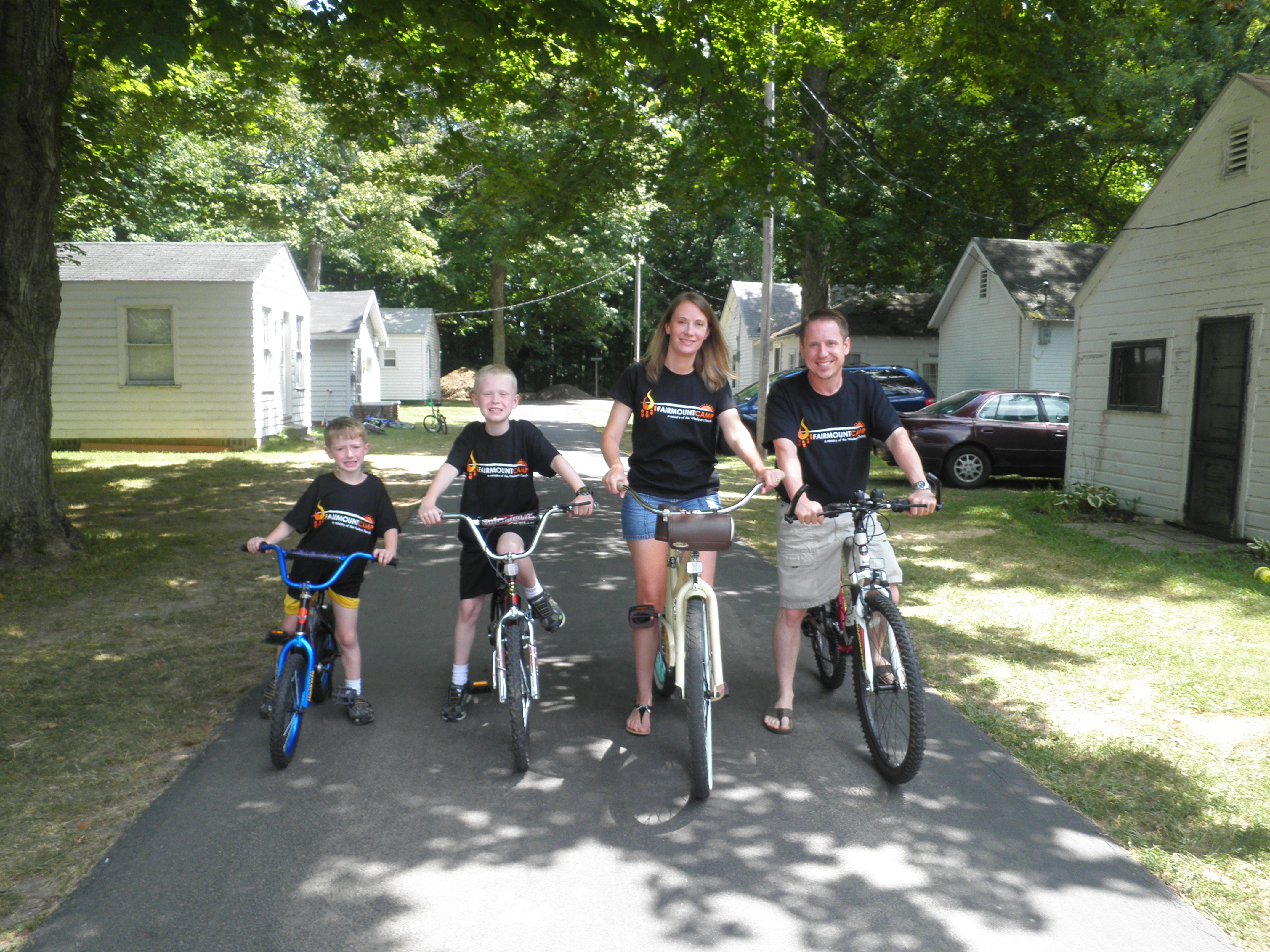 From Left to Right: Michael, Timothy, Maria, and David Kelly riding bikes at Fairmount Camp, one of their favorite pastimes. (www.fairmountcamp.org)
